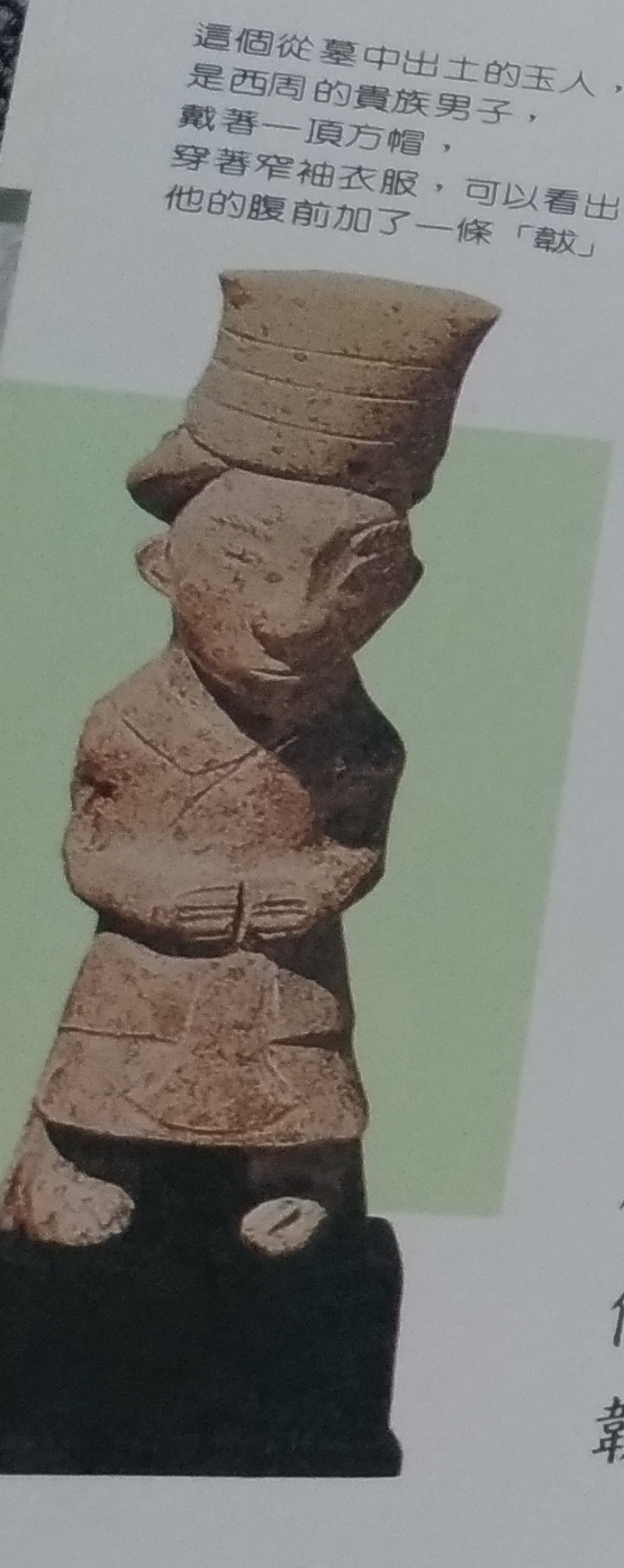 河南出土的玉人,衣交領,腰束帶,腹有韍(ㄈㄨˊ)