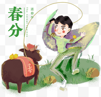 春分還有「送春牛」的習俗:把二開(2k)紅紙或黃紙印上全年農歷節氣,再印上農夫耕田圖樣,名曰「春牛圖」。送圖者一般都是能言擅唱歌者,主要說些春耕和吉祥不違農時的俗語,每到一家更是即景生情,說得主人樂而給錢為止。這些言詞通常句句有韻動聽。俗稱「說春」,說春人便叫「春官」。